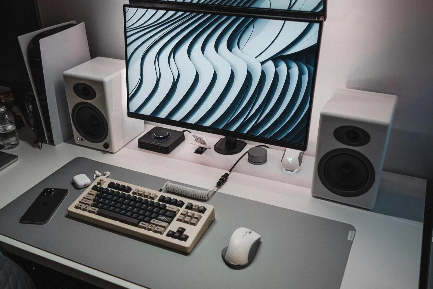First up is The Bucket List Tech. We featured them in our On My Desk series this year and his setup is constantly evolving. The products change, but the vibe remains the same: grayscale, clean, and minimal.